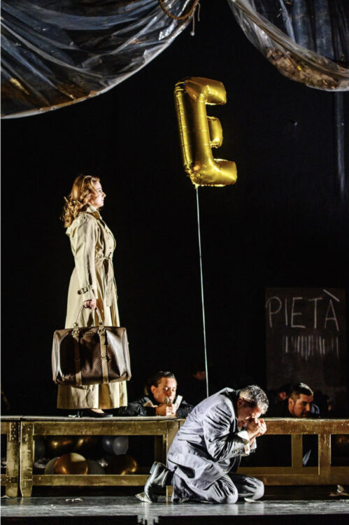 „Regisseur Philipp Westerbarkei und Ausstatter Tassilo Tesche entfesseln in Heidenheim einen regelrechten Krimi in der Art eines Film noir in klassischer Ausprägung und mit jeder Menge Zynismus und Ausweglosigkeit. Sie tauchen tief in eine oberflächlich anmutende Geschichte ein und fördern dabei jede Menge gezielt angebotener Anknüpfungspunkte für eine Auseinandersetzung der heutigen Art mit ihr zutage. Was Westerbarkei und Tesche hier auftischen (…) beleuchtet „I due Foscari“ nicht nur in allen Winkeln, sondern hebt die Geschichte auf ein neues Niveau und erzählt sie dankenswerterweise so, dass diese (…) Oper uns hier und heute etwas angeht und unseren Zeitgeist auf den Prüfstand stellt!“ (Heidenheimer Zeitung)
